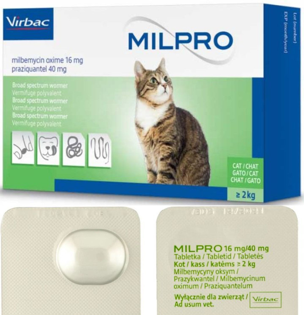 Мильпро для кішок в якості діючих речовин містить мильбемицина оксим і празиквантел.