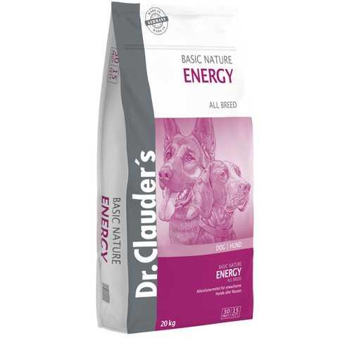 Др.Клаудерс Бейсік Нейчер Енерджі - збалансований сухий корм для собак усіх порід у період підвищених фізичних навантажень, змагань, виставок. Співвідношення білків і жирів 30/15, оптимальний вміст білків і вітамінів, містить антиоксиданти.