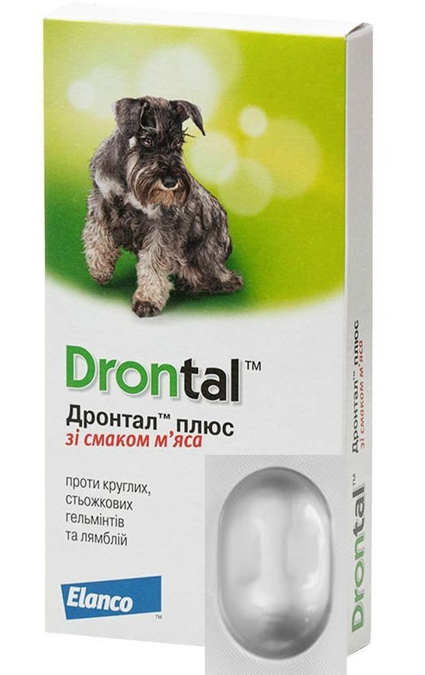 - ДРОНТАЛ ПЛЮС в 1 пігулці на 10 кг: пірантел ембонат - 144 мг, празиквантел - 50 мг і фебантел - 150 мг,